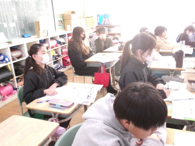5年2組では、世界の現地生産について調べていました。グラフをみんなで読み取りながら理由を考えていました。