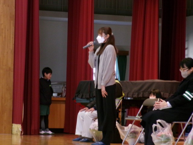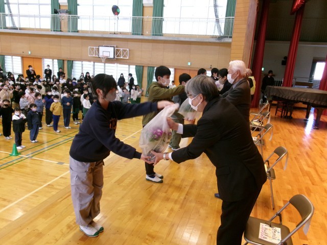 今日は、日頃感謝の気持ちを伝える「感謝の会」を行いました。まず、係の子どもたちからどんなことでお世話になっているかとお礼を伝えました。次に代表の子が感謝の花を渡しました。見ている子どもたちは、よい姿勢やあたたかい拍手で感謝の気持ちを伝えました。招待した方々から、地域のために頑張っていること、子どもたちがあいさつをしてくれてうれしかったこと、本の選び方など温かい言葉をたくさんいただきました。本当にありがとうございます。これからもよろしくお願いいたします。