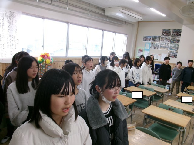 6年3、4組の教室では、歌の練習が行われていました。みんな真剣にきれいな歌声を響かせていました。