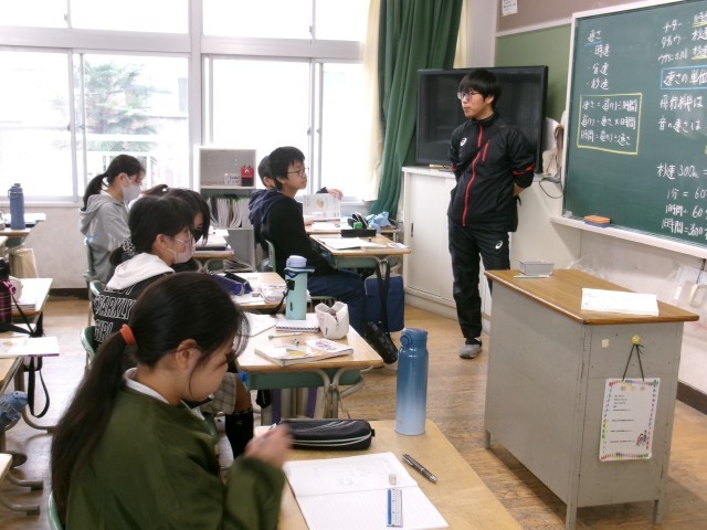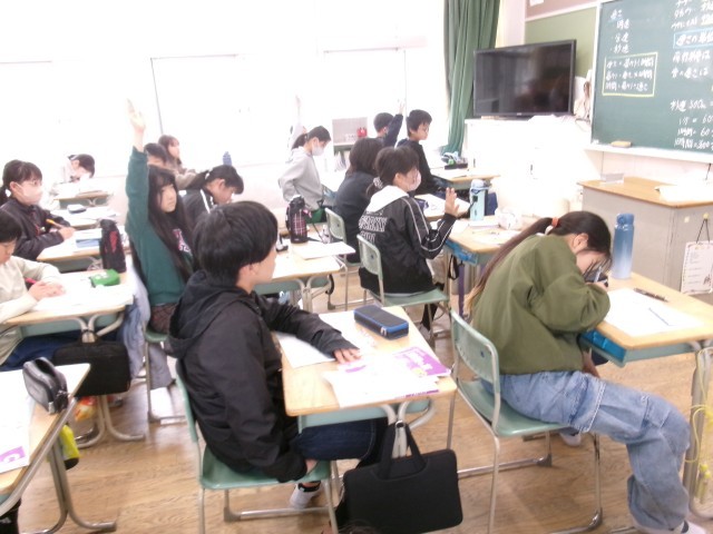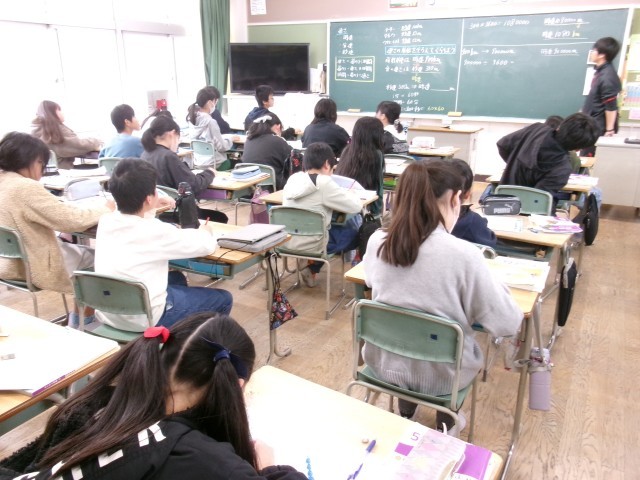 5年2組では、音の速さと飛行機の速さを比べていました。データから計算をし、結果がわかると、「すごい」と声が上がっていました。