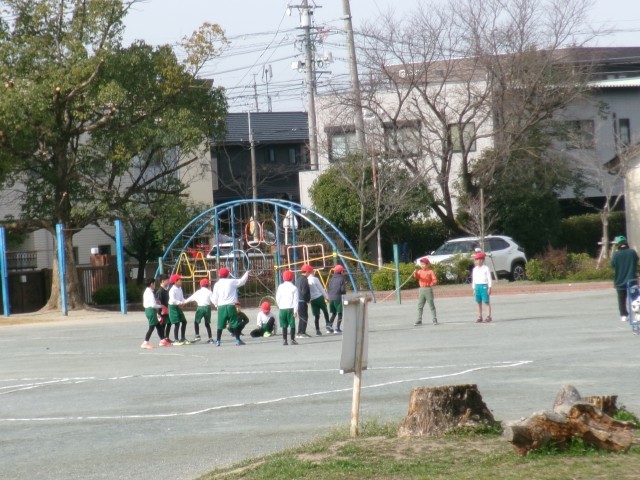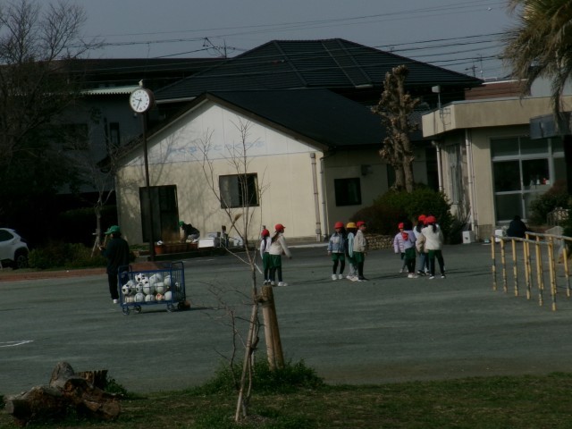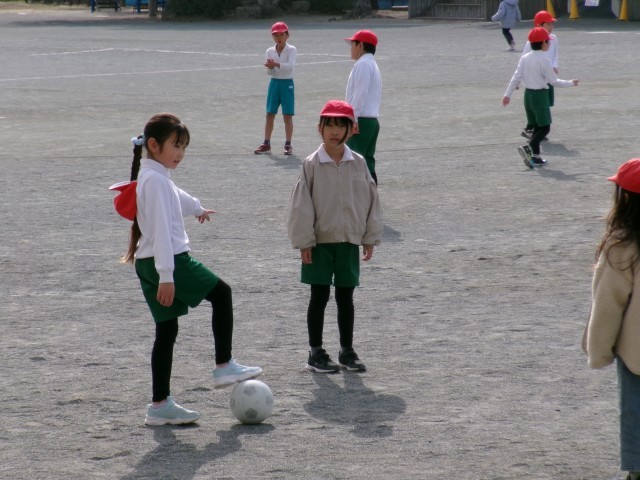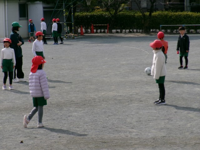 2年3組が運動場で長縄とボールけりを行っていました。長縄もボールけりも声をかけあって和やかに体を動かしていました。
