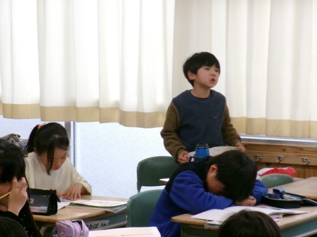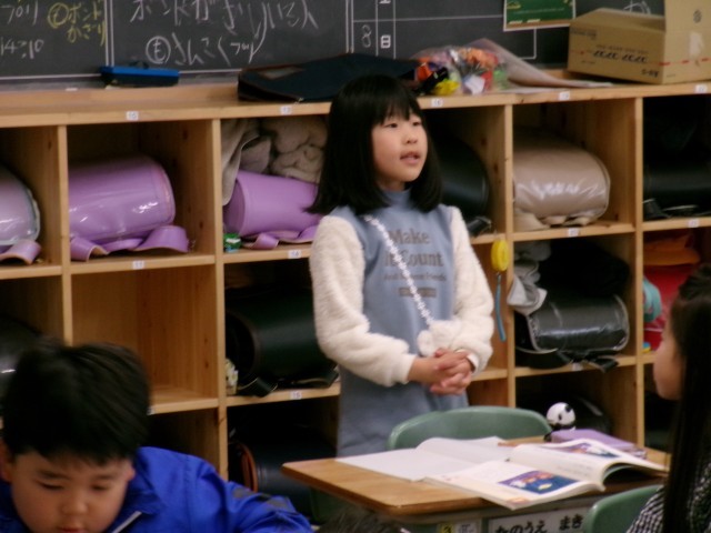 2年1組では、「ぶらんこ」の話を読んで、「友達と仲良くすること」について考えていました。ブランコで独り占めした登場人物について自分の考えを発表していました。