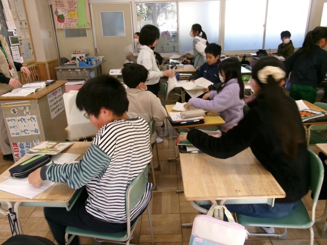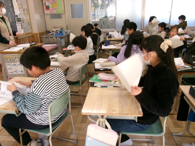 5年4組では、伝記の学習の続きを行っていました。「手塚治虫」について、本文からたくさんの情報が集まりました。最後プリントを集めて、ほかの人物の伝記を選んで読んでいました。