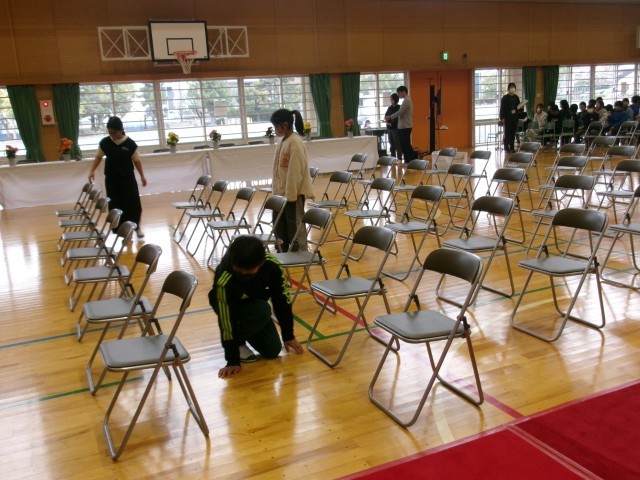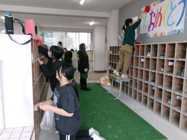 壮行会の後、5年生が残り、明日の卒業式の準備をしました。みんな一生懸命掃除や会場準備、飾り付けに臨んでいました。明日、気持ちよく卒業生を迎えられます。5年生の皆さんお疲れ様でした。