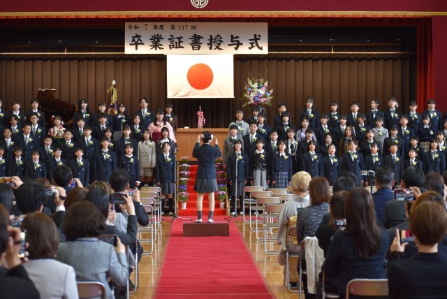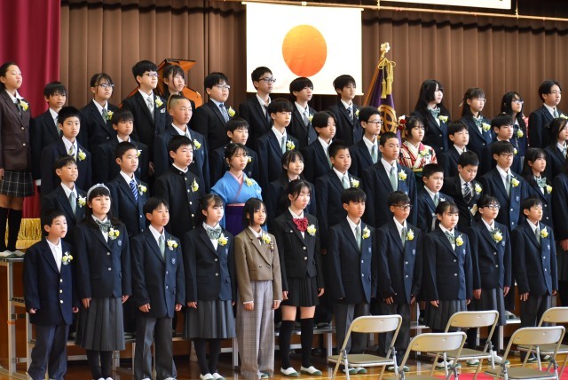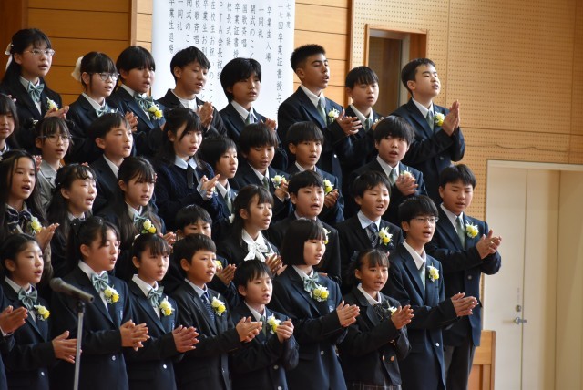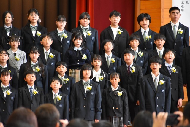 卒業生お別れのことばがありました。今までの安城北部小学校での思い出と感謝の気持ちを言葉と歌で伝えました。とても気持ちのこもった「お別れのことば」でした。
