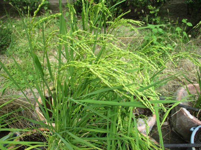 まだ、暑い日が続きますが、5年生が育てている稲の穂に実が付いてきました。メイン花壇のジャンボカボチャの雌花のもとも、大きくなってきました。
