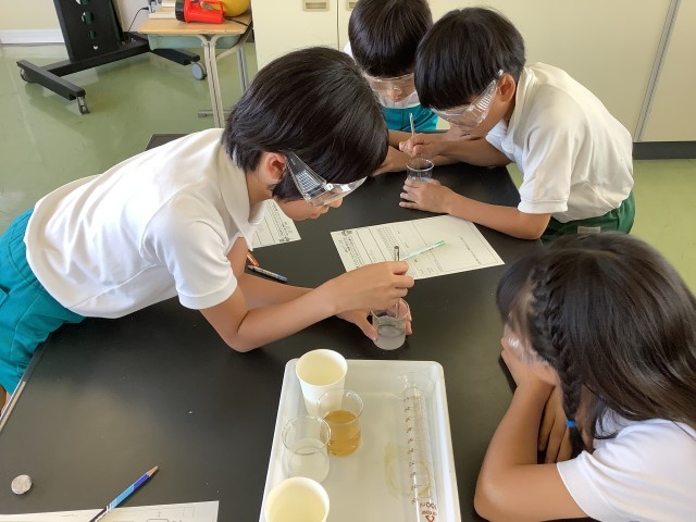 5年2組では、理科の授業で砂糖などが水にどのくらい溶けるのかというのを予想して、実験を行いました。実験結果をワークシートに丁寧にまとめることができました。