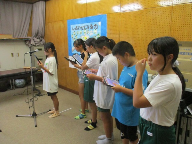 広報委員会と飼育委員会から発表がありました。パワーポイントを操作したりクイズなどを使ったりして委員会の詳しい活動内容を紹介していました。