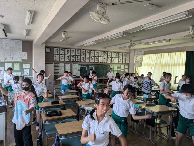 今日の6時間目は1組はどっこいしょの練習、2組は道徳、3組は総合、4組は習字でした。