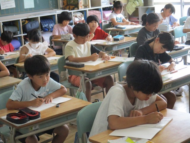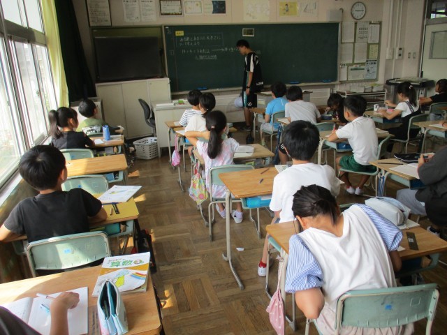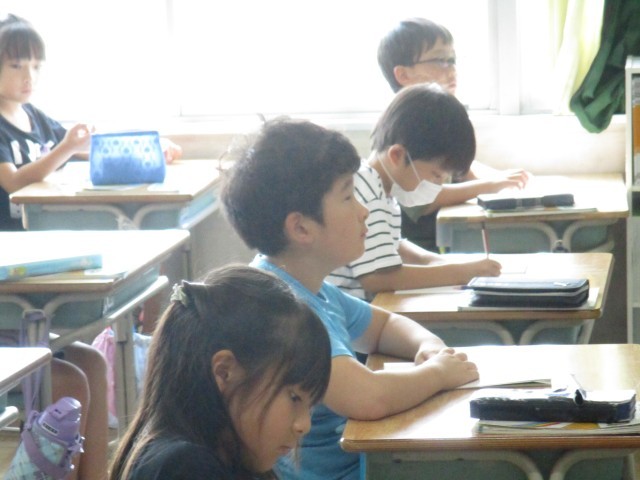 3年3組が算数で割る数とあまりの大きさの関係を調べていました。1つの問題を解き、みんなで話し合って、割る数よりも余りが小さくなることを見つけ、ほかの問題にも応用できるか考えました。