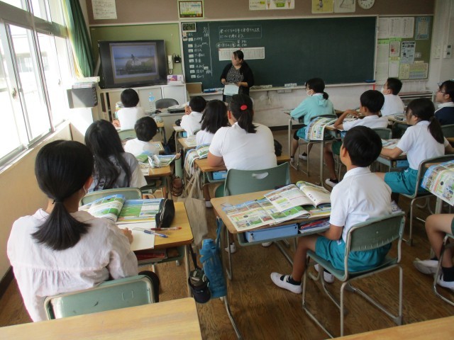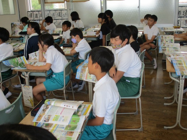 5年2組では、稲づくりの仕事について、動画や資料集を見ながら学んでいました。今まで知らなかったことが出てくると、「へええ」と言いながら真剣な眼差しで動画を見ていました。
