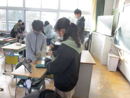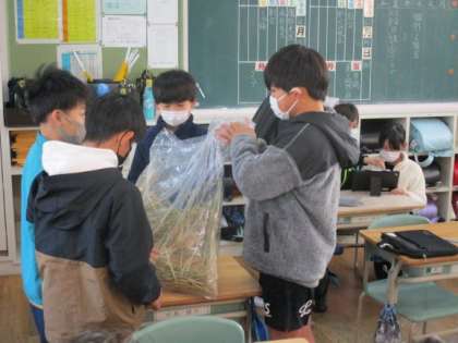 収穫した稲わらをつかって「ほうき」を作っています。