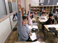 2年1組では、算数の「長さ当てゲーム」をしていました。グループに分かれて、夢中になって学習に取り組んでいました。