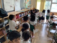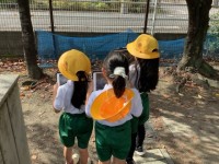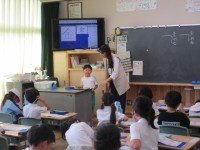 2年生が作ったおもちゃで1年生と遊びました。どのおもちゃも作り方に工夫があり、1年生は熱中しました。