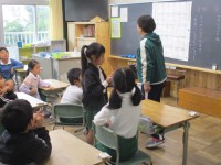 2年4組では新しく赴任した先生との親睦を深めるために、椅子を輪にしてゲームをし...