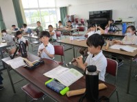 3年3組が視聴覚室で、リコーダーの学習をしていました。一人一人の演奏をみんなで...