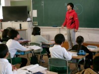 3年1組では、人口の移り変わりについて学習していました。グラフからわかったことを発表した後、全員でグラフを指さしながら人口比率を読み取っていました。