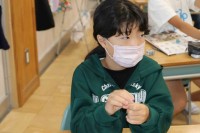 外国語の授業で場所を表す表現を学習しました。上を示す「on」、中は「in」、下は「under」など、手の動きを加えながら理解していました。