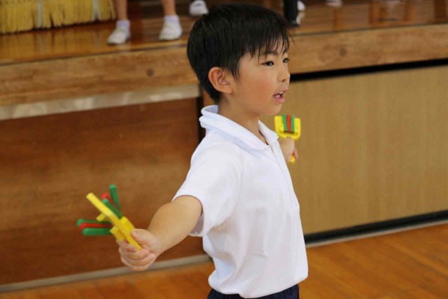 運動会に向けて、どっこいしょの練習をしました。踊りの動きはほぼ覚えることができました。体育館中にちらばって、元気よく踊っていました。