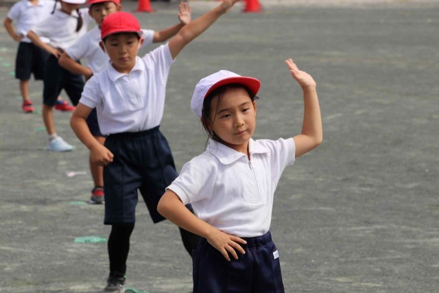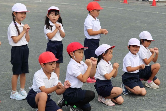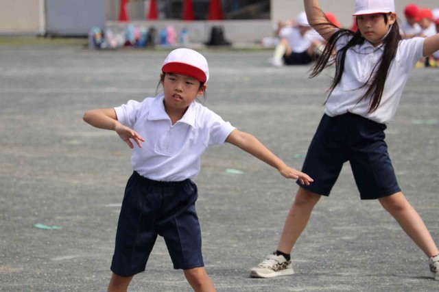 運動会の音遊練習をしました。2年生が手本となって、キレのある踊りをしていました。1年生も一生懸命ついていこうと頑張っていました。もう少し練習を重ねると動きがそろってくると思います。