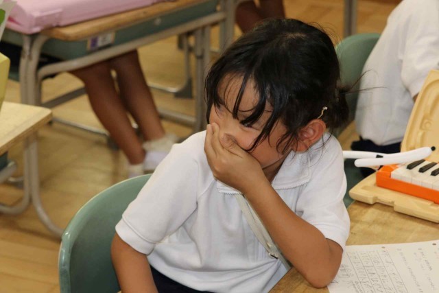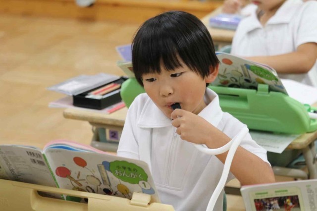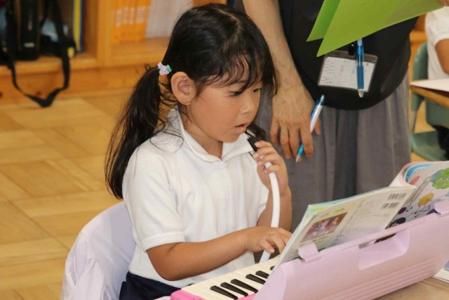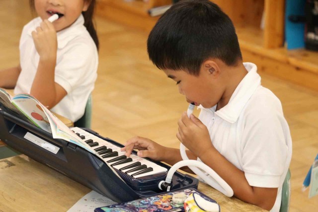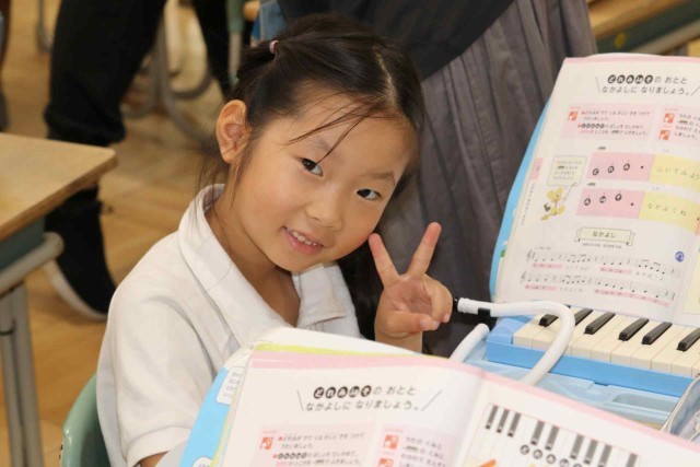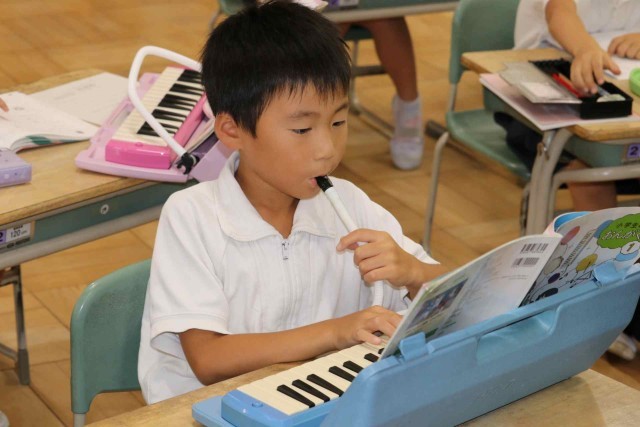 音楽の授業でピアニカのテストをしました。一人ずつ先生の前で「なかよし」という曲を聞いてもらいました。「ドレミ 吹いてみよう」「レミファ あそぼうよ」と歌を歌いながら演奏した子もいました。