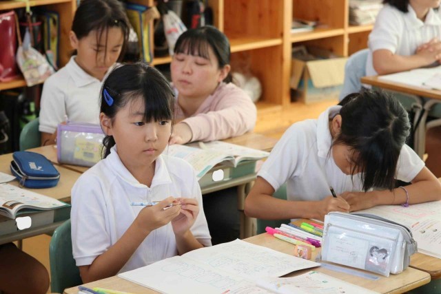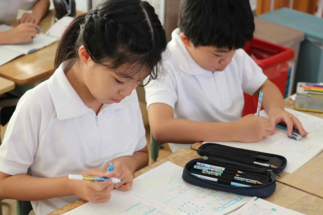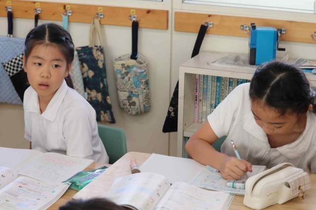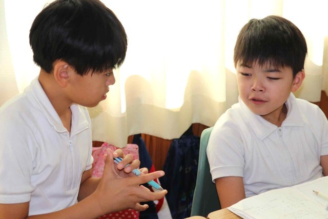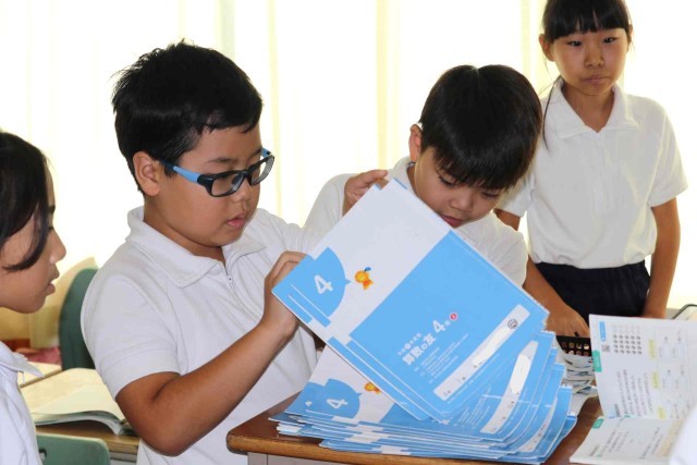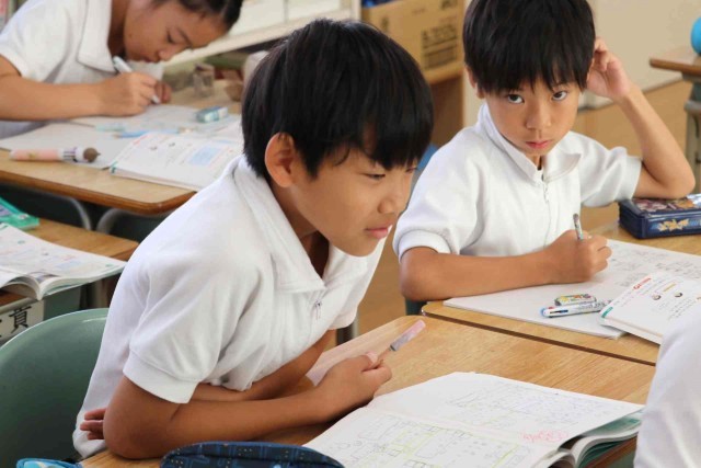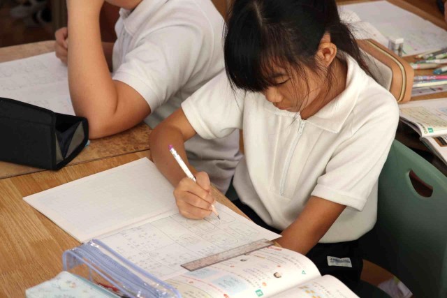 算数の授業で求める数を□にした式を解きました。花束が4つあり、全部の花の数が24本のとき、一束の花の数を□本として計算式を立てました。「□×4=24」となって、□は6本だということが分かりました。