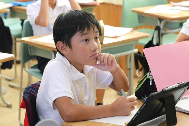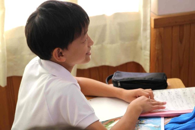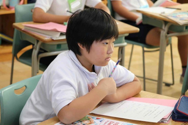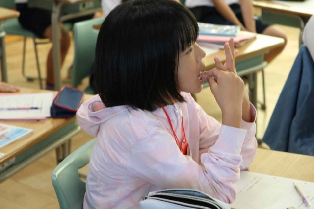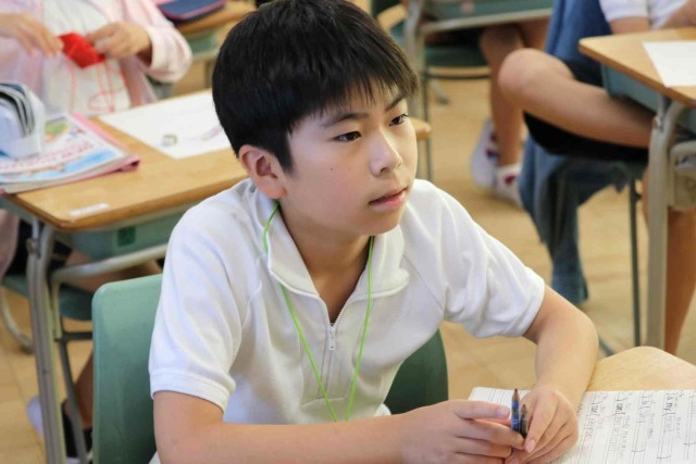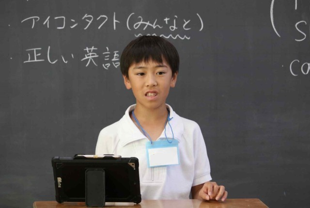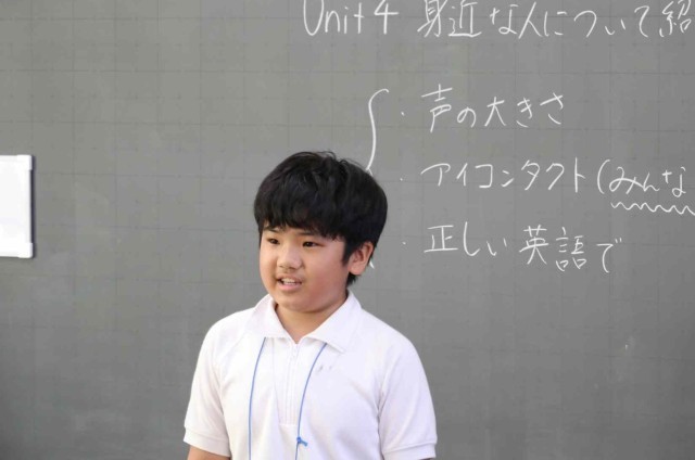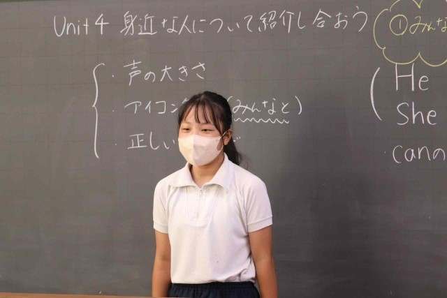 外国語の授業で「~ができる」を意味するcanの使い方を学習しました。友達や家族など身近な人をとりあげて、「She can cook.」「He can play soccer.」と英語で紹介する活動をしました。みんな上手に英語で話していました。