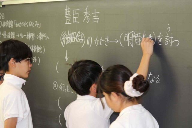 社会の授業で戦国から江戸時代にかけての歴史を学習しました。織田信長を討たれた後に豊臣秀吉がとった行動などを確認しました。平和な世の中がどのように作られていったのかを理解しました。