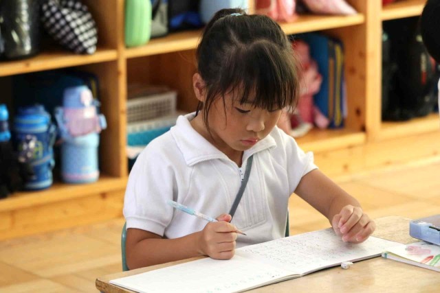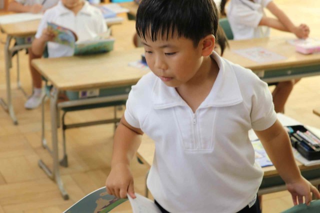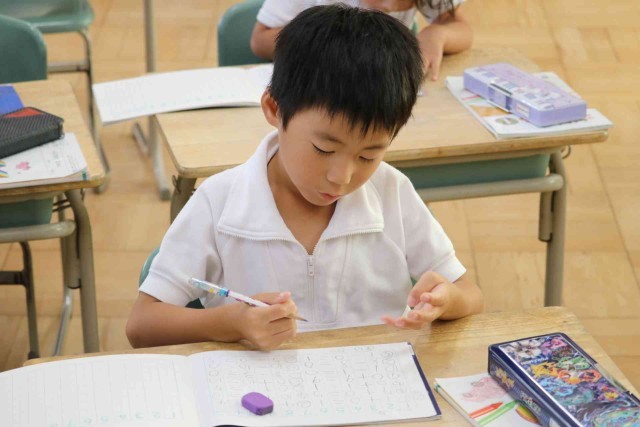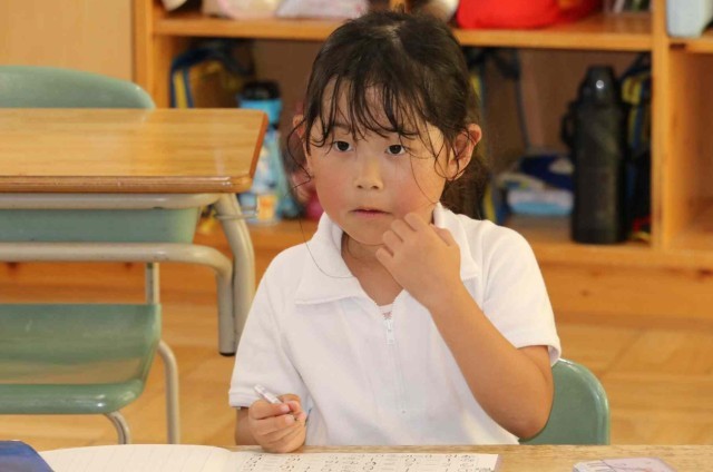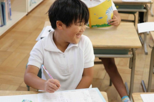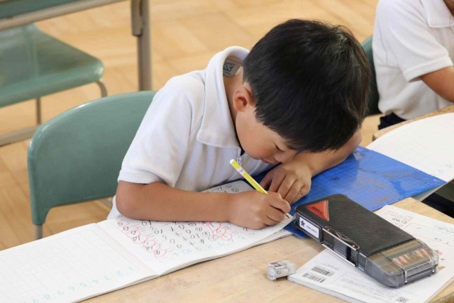 算数の授業で0をふくんだ計算をしました。「5-0=5」「0+3=3」「8-8=0」など、間違えずに答えることができました。問題集の練習問題にも意欲的に取り組んでいました。