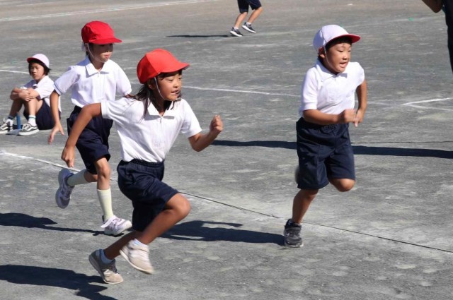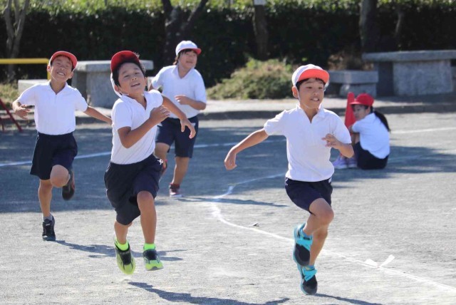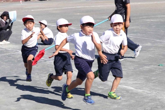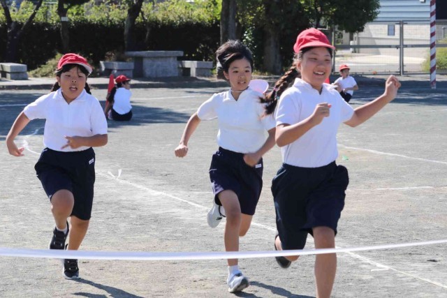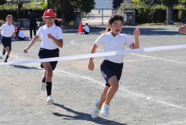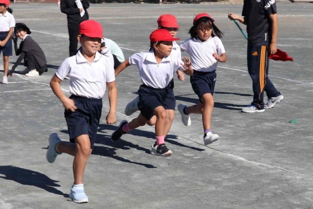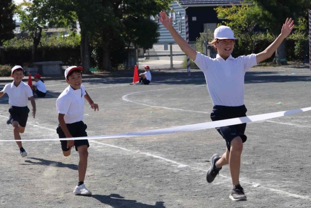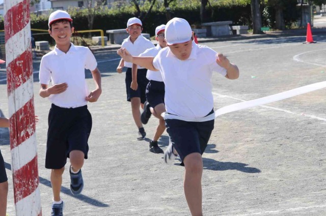 晴天に恵まれ、運動会の予行演習を行うことができました。最初の競技は徒競走です。本番さながらの熱戦が繰り広げられました。
