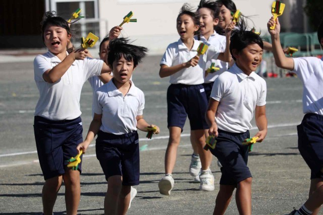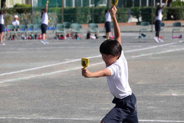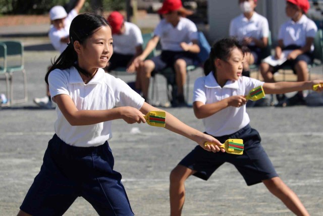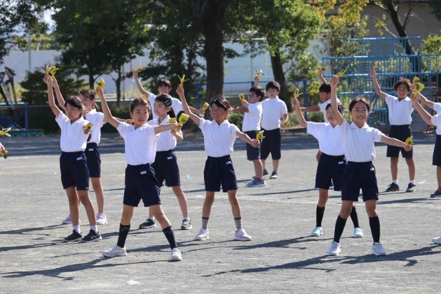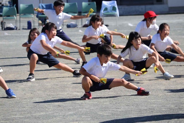 3,4年生がどっこいしょを披露しました。「よいしょ」と大きな声を出しながら元気よく踊りました。