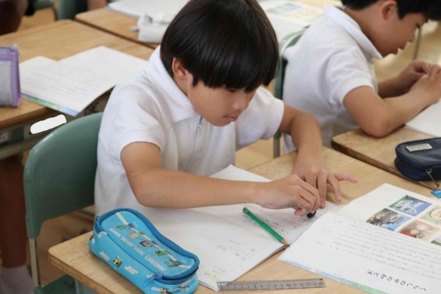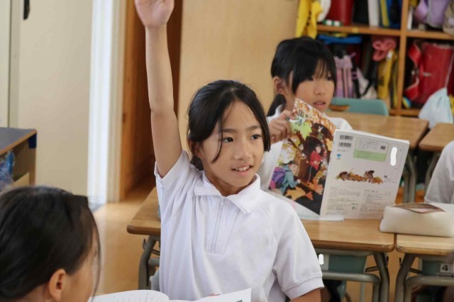 国語の授業で文化に関する説明文を読みました。文章のまとまりをとらえて、筆者が伝えたいことを考えました。積極的に手を挙げて、意見発表をしていました。