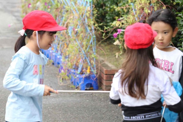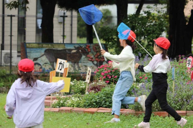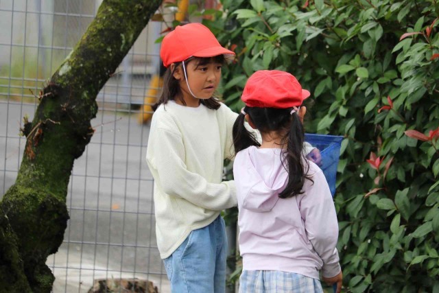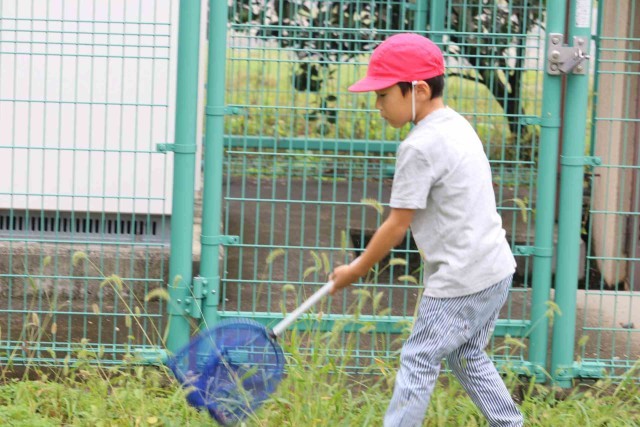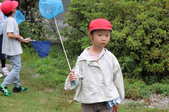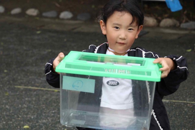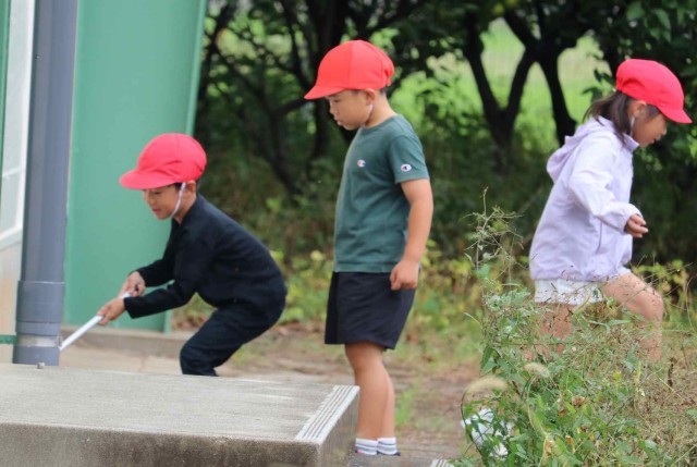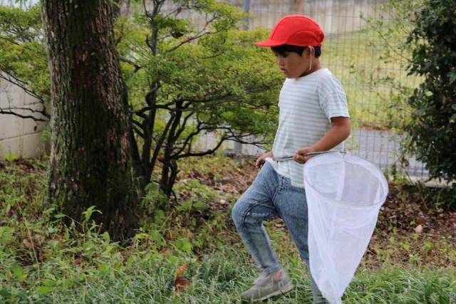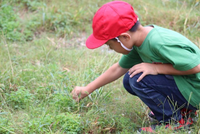 生活科の授業で秋の生き物探しをしました。前回よりも気温が下がってきて虫の数も増え、コオロギなどを見つけた子もいました。いろいろな場所に行って、虫がいないか探していました。