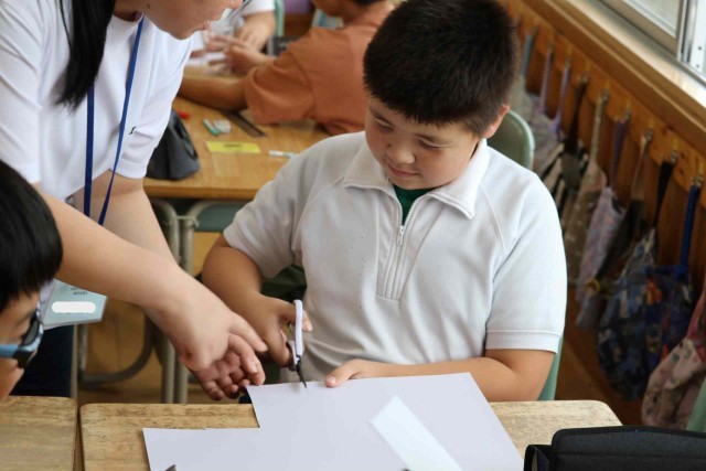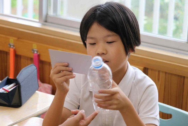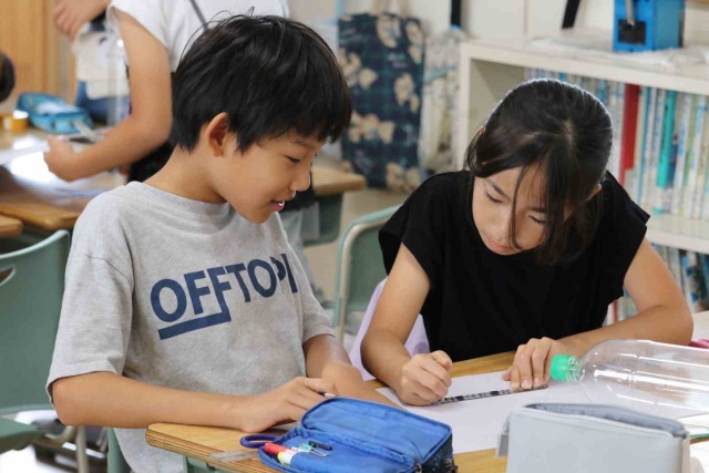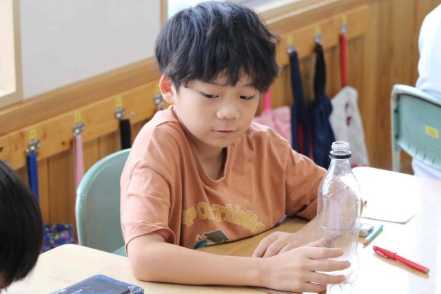 総合の授業でペットボトルのロケットを作りました。ごみとして捨てられるペットボトルを利用して、理科の学習に生かそうとしています。高く飛ぶロケットができるとよいですね。