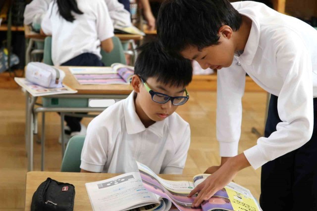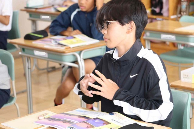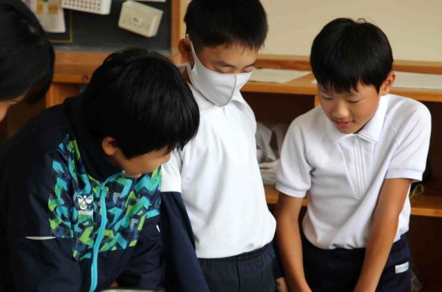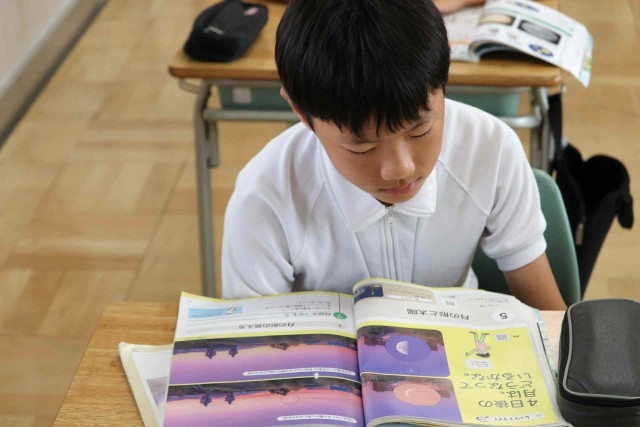 理科の授業で天体の学習をしました。満月の4日後の月の形はどのようになっているのかを考えました。自分の考えと友達の考えを比べながら、月の動き方を理解していました。