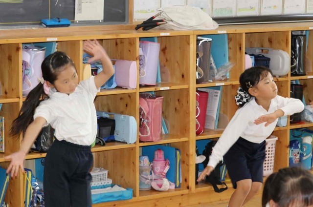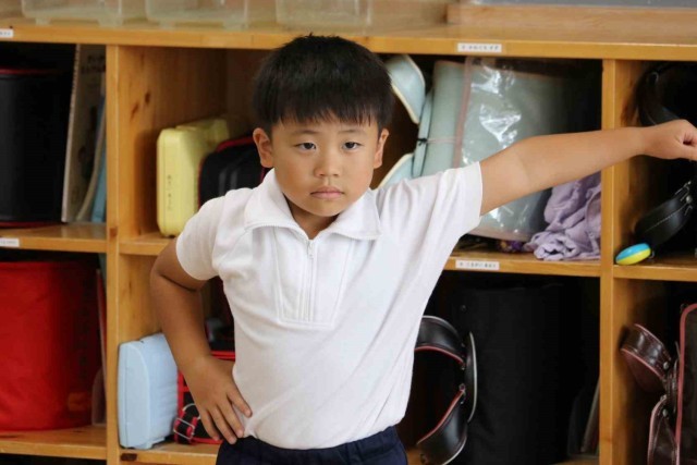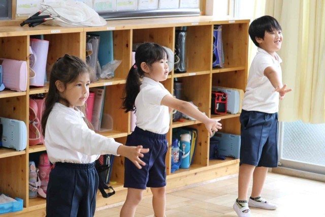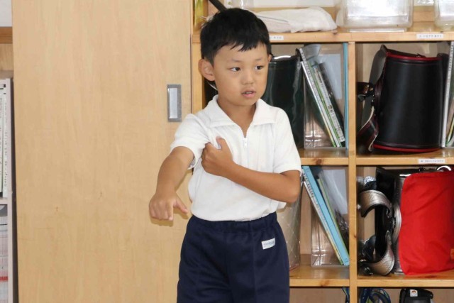 運動会で披露するダンスのテストをしました。教室の後ろに並んで踊る様子を担任の先生にチェックしてもらいました。みんな元気よく踊ることができました。