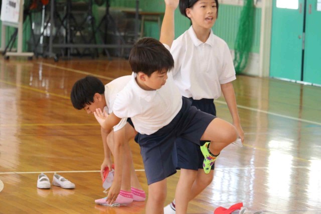 3週間の教育実習が終わりを迎えます。4年生がお別れ会を企画して、みんなで楽しむことができました。じゃんけんで負けると新聞紙を半分に折りたたんで、その上に立つゲームをしました。とても楽しい思い出になりました。