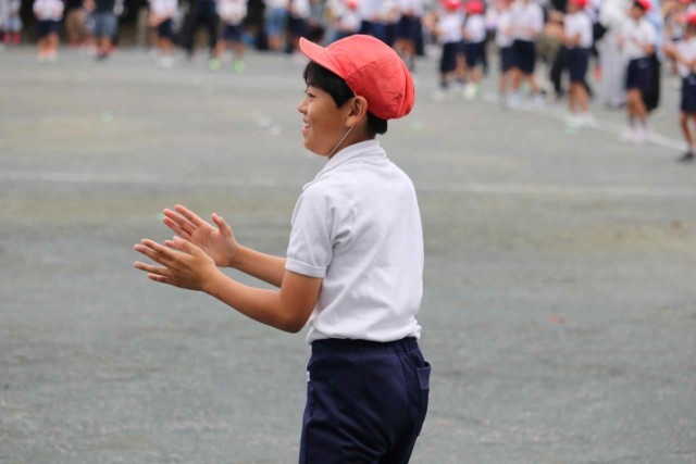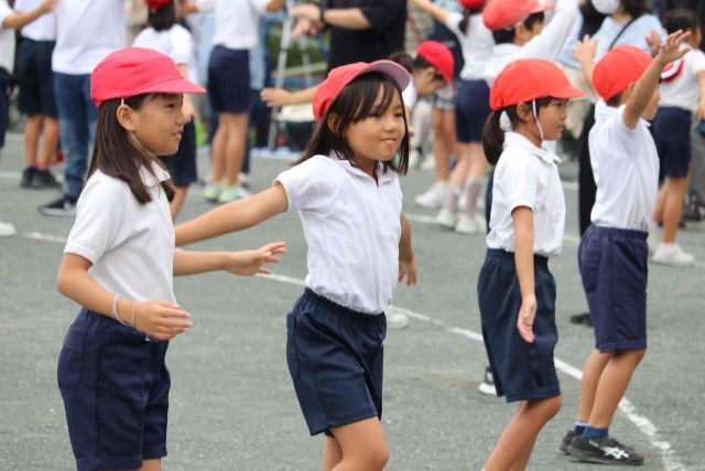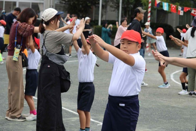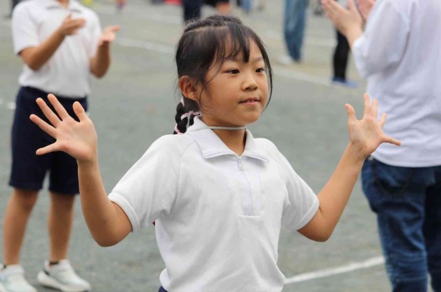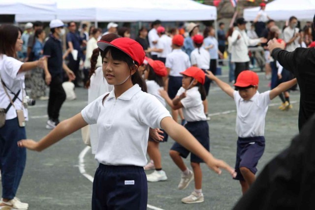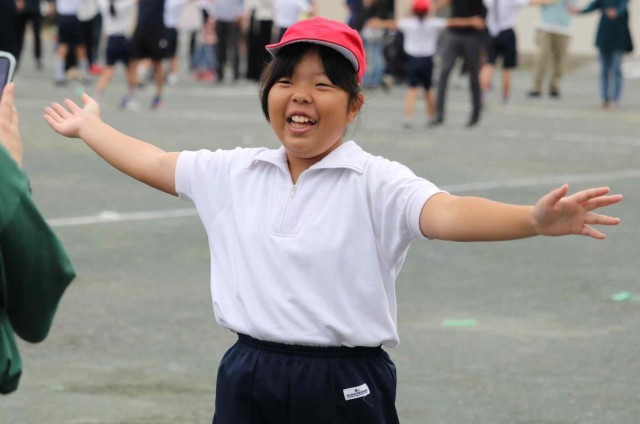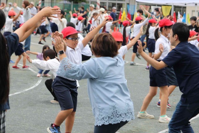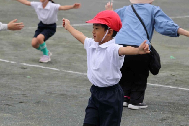 開会式で校歌の「輝くひとみ」を踊りました。お父さんやお母さんといっしょに絆を感じる時間になりました。