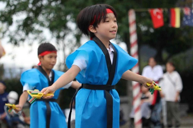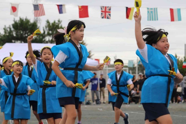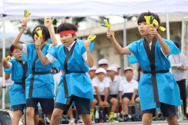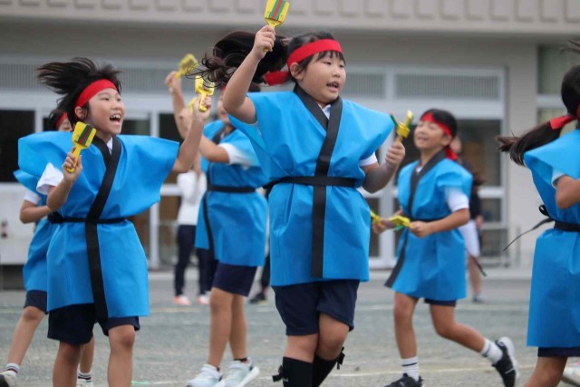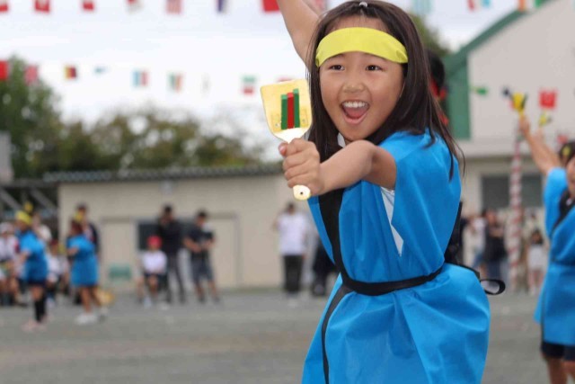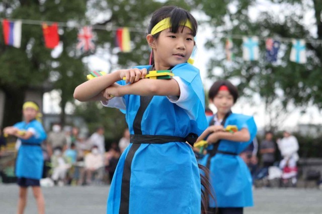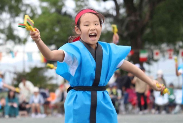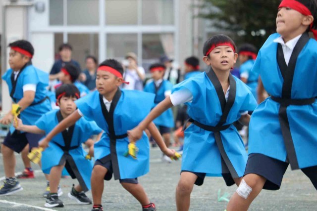 青色のはっぴを身にまとい、元気よく「どっこいしょ」を踊りました。大きな声ときびきびした動きに目を奪われました。