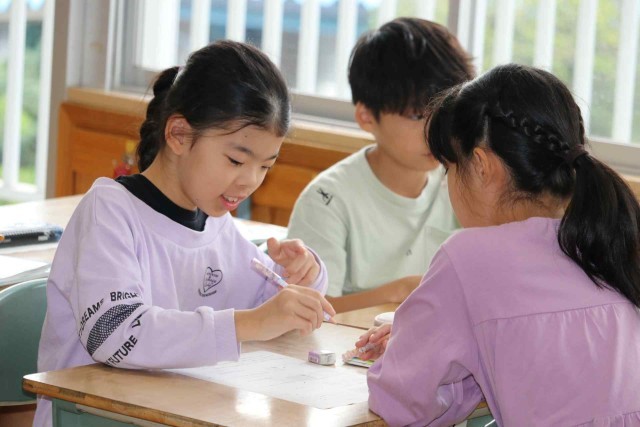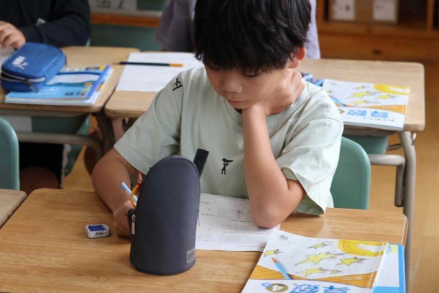 算数の授業で面積の学習をしました。一辺が1cmの正方形の面積は、1平方センチメートルであることを覚えました。この単位を使って、長方形の面積などを計算しました。