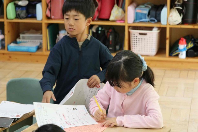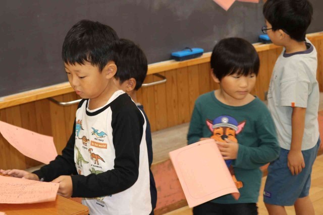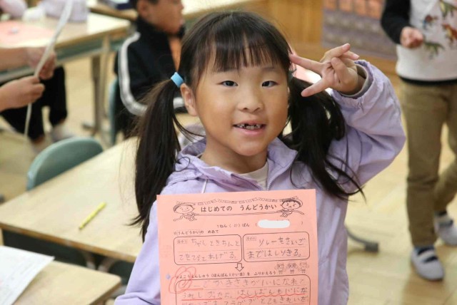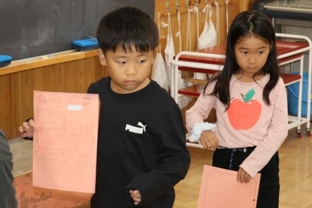 先週の運動会の思い出やがんばったことをふり返りました。小学校に入学して初めての運動会ということもあり、いろいろなことが印象に残ったようでした。「大きく足を上げるのをがんばりました。」「リレーをがんばって走りました。」などの前向きな言葉が見られました。