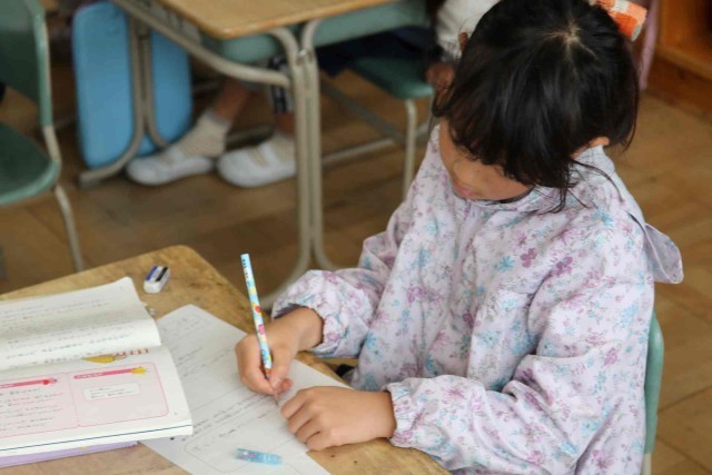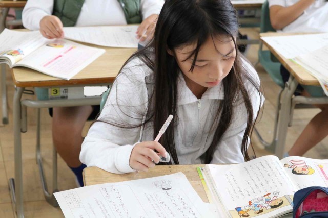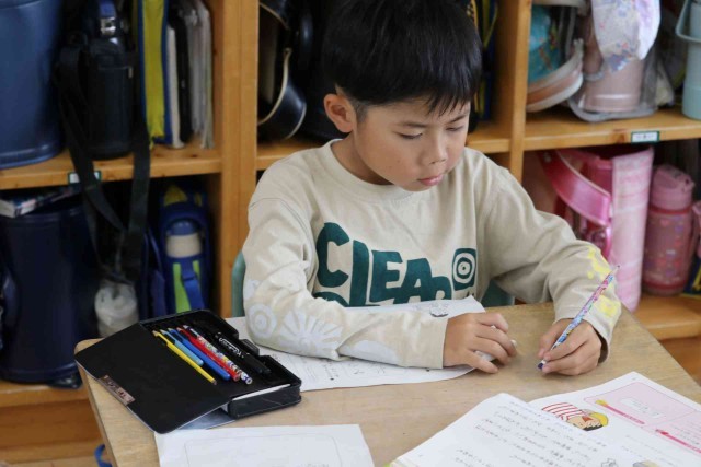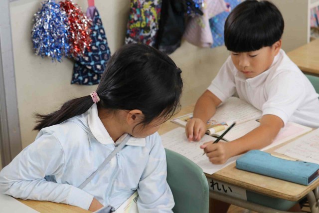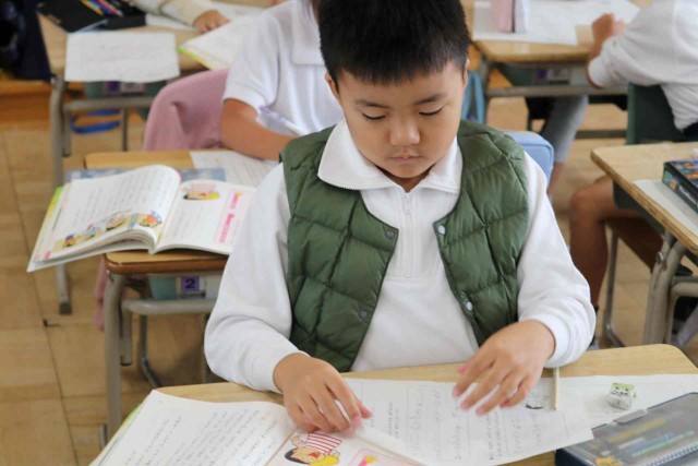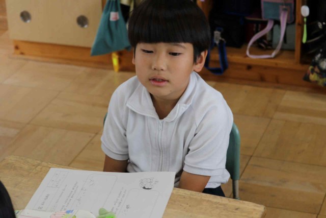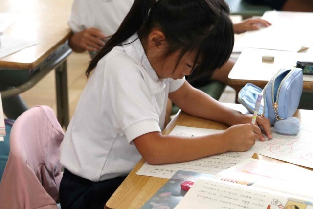 道徳の授業で「おでこのあせ」を読みました。しかたなく参加した町のごみ拾いに、徐々にやりがいを感じて働く主人公の姿などを通して、みんなのために働くことのよさを考えました。