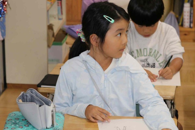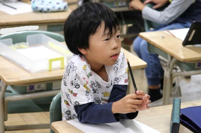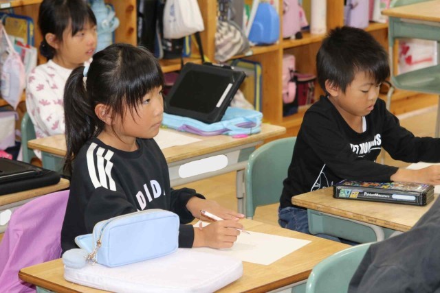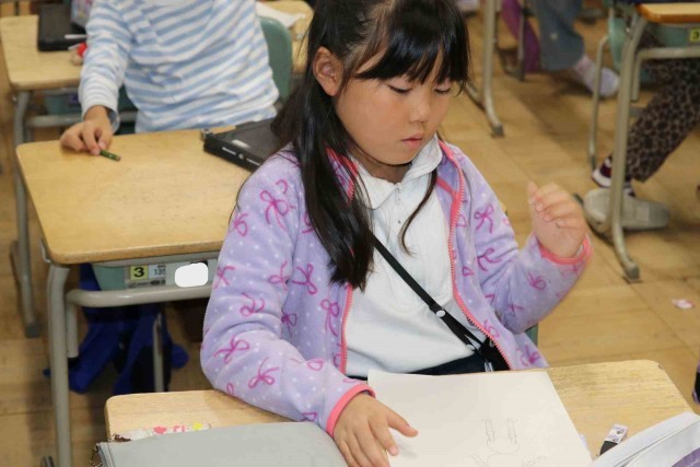 図工の授業で版画の学習をしました。今日は版画の下絵となる人の形を描く練習をしました。頭と体の大きさ、足の長さなどに気をつけて、人の体に見えるようバランスよく描いていました。