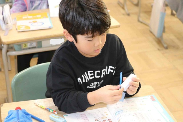 算数の授業で九九の学習をしました。今日は2の段を覚えました。「2×1」から「2×9」まで、暗記カードを使うなどして正しく答えることができました。