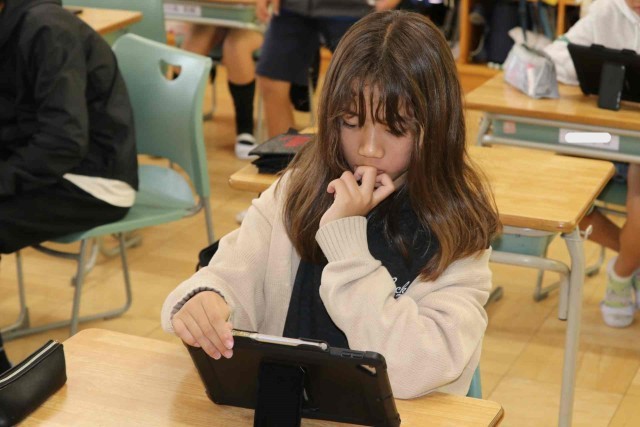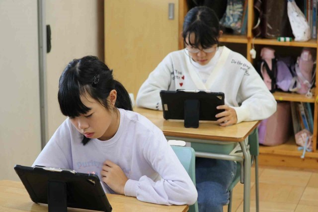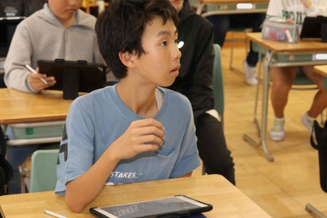 総合の時間に情報モラルについて学習しました。人工知能やロボット、ドローンなどが普及することにより、自分が30歳のときに社会がどう変化しているのかを想像して意見交換しました。