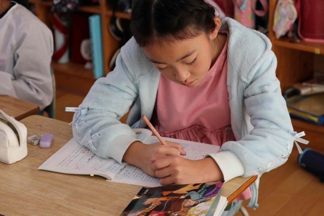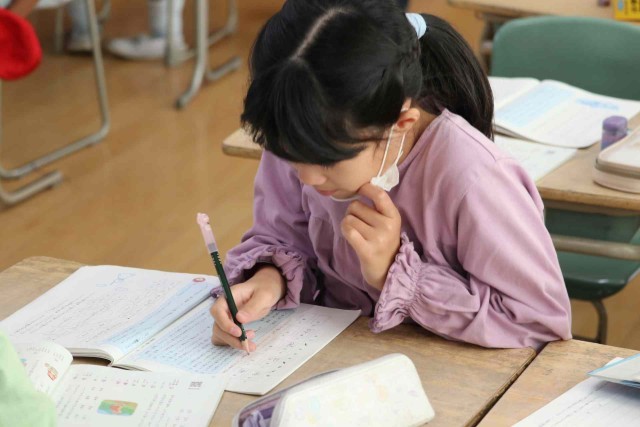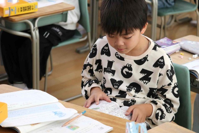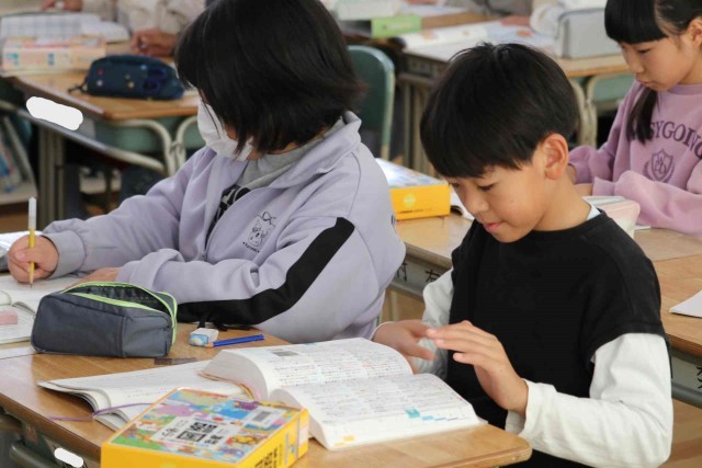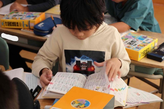 国語の授業で熟語について学習しました。似た意味や、反対の意味をもつ漢字を組み合わせて熟語ができていることを理解しました。辞書を使って、まだ知らない熟語を探していました。