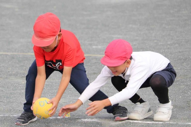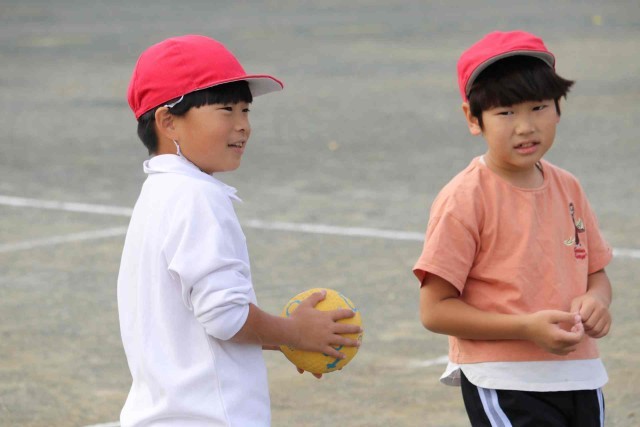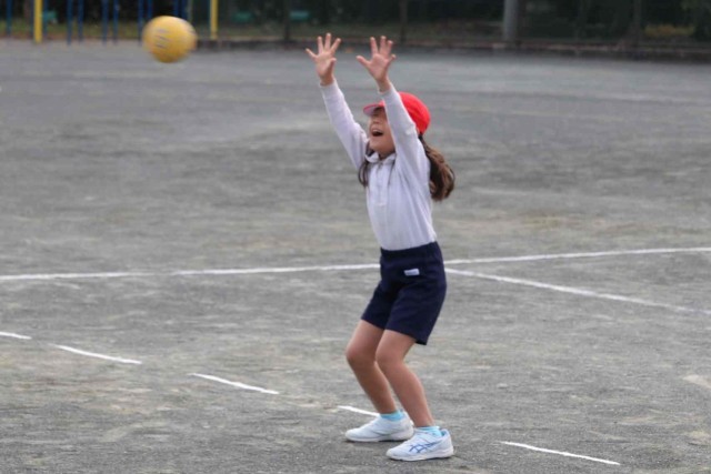体育の授業でボール運動をしました。ドッジボールのように内野と外野に分かれて、外野から投げたボールを相手チームが内野で捕ったら得点というルールでした。内野を越えるくらい遠くにボールを投げられる子もいました。