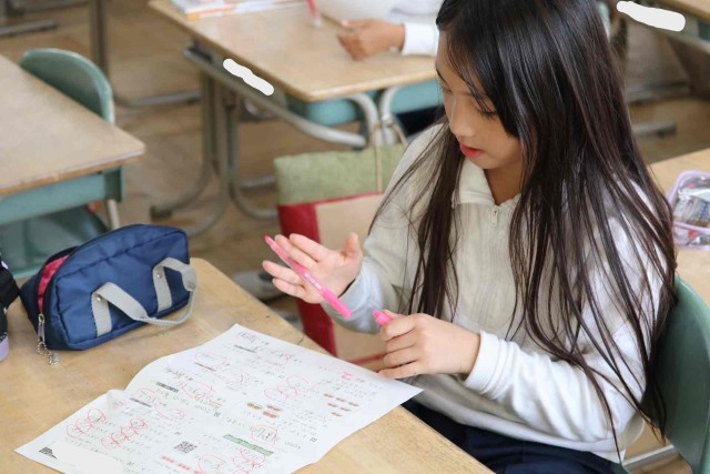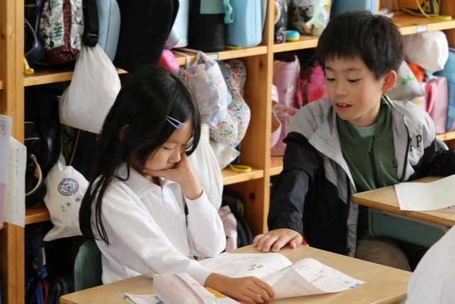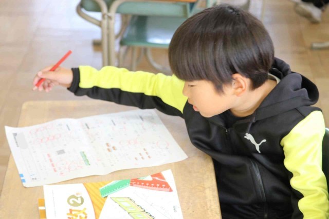 算数の授業でテスト返しをしました。かけ算のテストで、たくさんの子が高得点を取っていました。間違いが多かった問題を取り上げて、先生が説明していました。