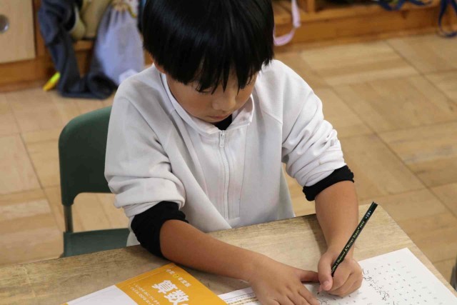 算数の授業で九九の学習をしました。今日は8の段を覚えました。数字が大きくなっても間違えずに言えるようになりました。