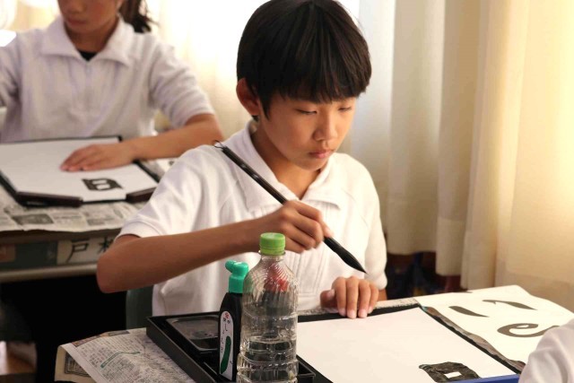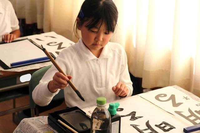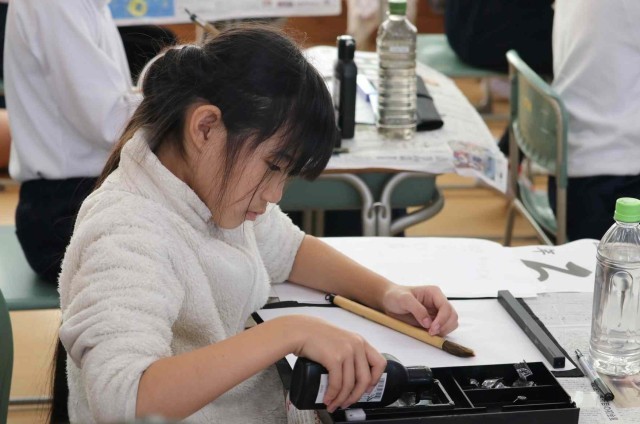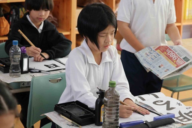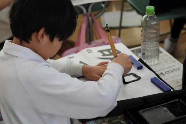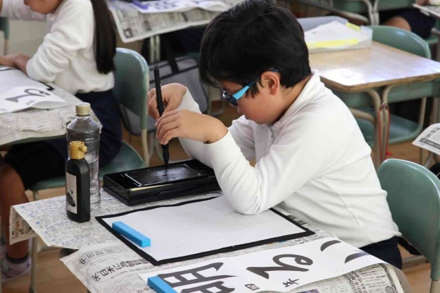 書写の授業で書き初めの練習をしました。4年生は「明るい声」という字を書きます。今日は半紙で「明る」の2文字をくり返し練習しました。今後、残りの字を書いて、書き初めにしていきます。